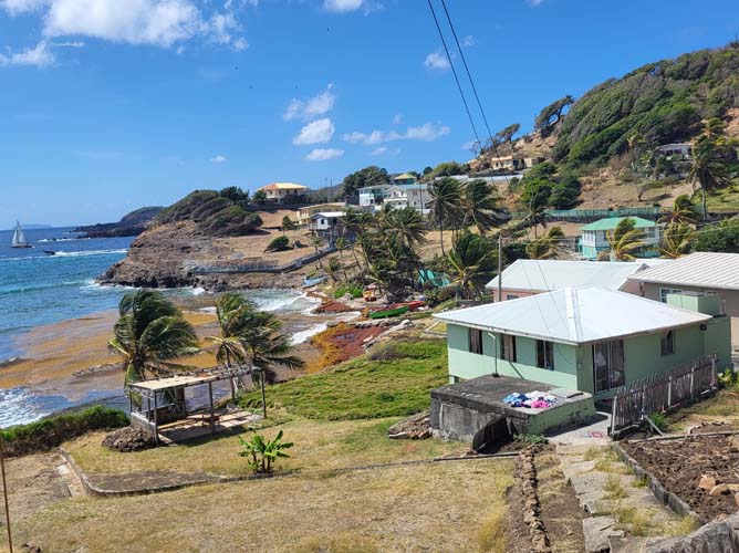 Hope Bay feels remote and wild, located on the windward side of the island. The walk down the bay can be done on one trail which was an old supply road. Once on the beach, to the south, off the marshy grasses, another poorly marked trail allows you to reach the roads going through the neighborhoods. The beach can be beautiful, but in our case sargassum and plastics from Africa and European fishing activity had drifted to shore. I suspect the Sargassum is not always there but the rest, sadly, will be. We asked one local the way to town, and they replied both roads go back, it all depends which way you prefer to go. There were several very friendly people on our way back, willing to chat. One was a Bed and Breakfast owner born on the island. Another was a lady from the UK who shared many complaints about the neighboring sheep and goats and their effect on her garden. It is easy and fun to engage here.