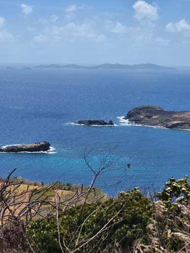 Mount Peggys (see pictures) is a short hike and the biggest challenge is to find the path. The view is a 360 degrees of Bequia and you spot surrounding islands. Taking a walk from the Princess Margaret Bay maximizes scenery. However if inclined to keep it shorter, you can take a taxi. The taxi will provide directions to the path up the hill, one that is not easy without instructions from the book or the locals. I highly recommend starting early in the morning because of the heat build up during the day. Our 10AM start from St Margaret Bay caused us to run out of water. We needed two quarts and only had one per person. Once at the top, a steep path goes back to St Margaret where you can get drinks on the beach. Most likely you will want fruit juices and water at that point.