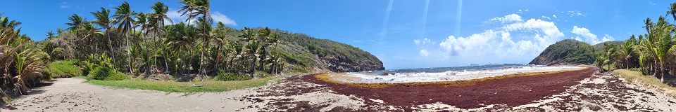 We arrived in Bequia direct from St Lucia's Rodney Bay, after an departure from the anchorage in the middle of the night. Winds were light, and died completely in the lee of St Lucia by the Pitons, a tide driven salinity gradient there adding to the problem of being abe to get through. We did not particularly want to start the engine in the Sargassum that accumulates at the tideline, which gathered over a very large patch, so we drifted until clear water. Once past St Lucia's south point we headed for the windward side of st vincent and had a great sail, turning on the south side of St Vincent into the Bequia Channel, wing on wing at the edge of the shelf. A couple of fishermen boats pointed our way, to take advantage of the fish on the slope of the bottom, indefferent to our presence. We waved. Soon we arrived into Bequia, just before sunset. Arriving in daylight into reef areas is highly preferred in these waters. Our departure at 3AM was just right.