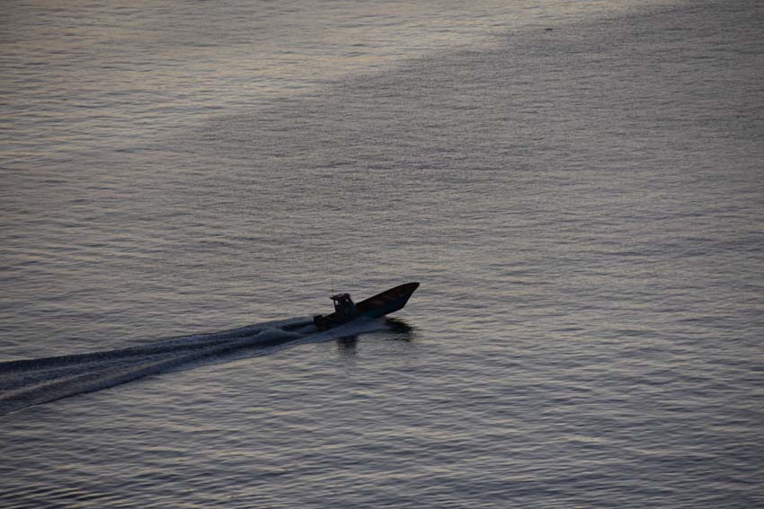 We found protection one day behind a cruise ship, as their mass makes a great wave attenuator, 25 feet deep and a few hundred feet, alas they left in the morning and the swells replaced our sleep.