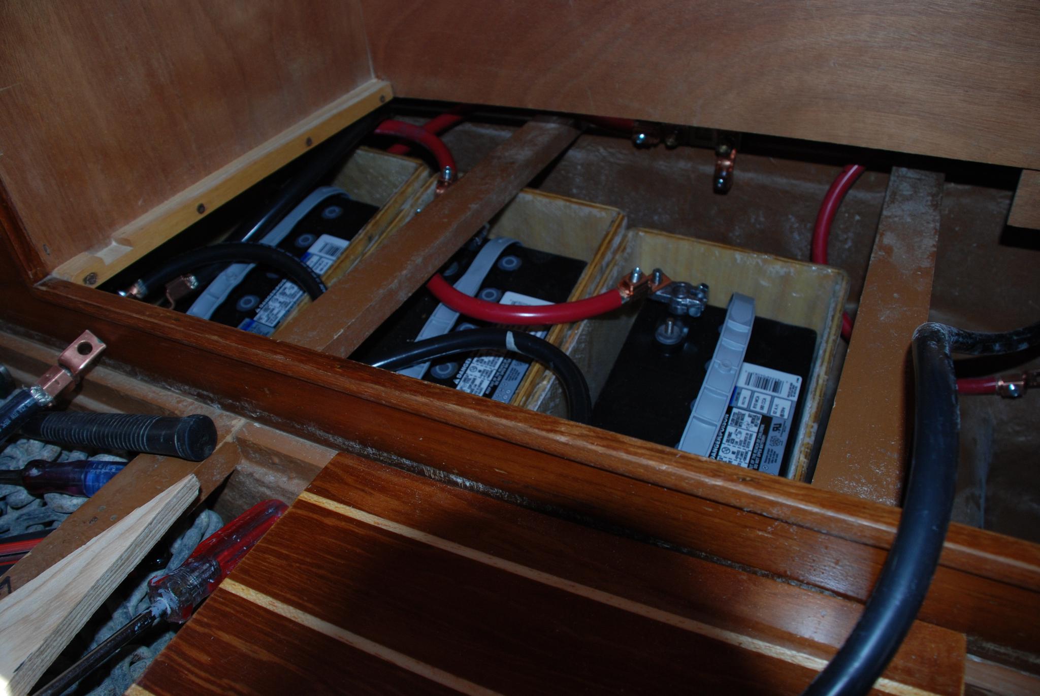 For power, most thrusters use a deicated battery bank, in this case two would be typically used. This allows a 24 V thruster, and the batteries are replenished with a DC/DC charger feeding off the house bank, or AC, or the engine. The consequence is a high current demand on two batteries, and a deep and fast depletion of charge. I decided to tie the thruster to the house bank, and this allows normal charging of all batteries at the same time, but required a heavy wire bus ( 3/0 or 4/0) from the aft bank to the forwrad thruster batteries. And this also allowed me to dedicate three batteries to the thruster, so all the batteries suffer equal stresses. A cutoff switch is in the area of the thruster. It is switched off whenever we dive the bottom. The wire bus is fused, and each battery in the house bank ( 8 of them) is individually fused.
